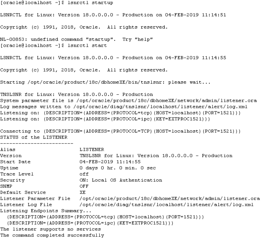 El siguiente pasó será ejecutar el comando lsnrctl start.