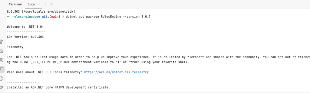 El siguiente paso es agregar RulesEngine nuget package a nuestra solución, si presentas algún problema en este paso ir a la sección de troubleshooting abajo en este mismo artículo